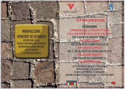 Giorno della Memoria a Staranzano: nove pietre d’inciampo dedicate a militari, donne, partigiani e semplici cittadini